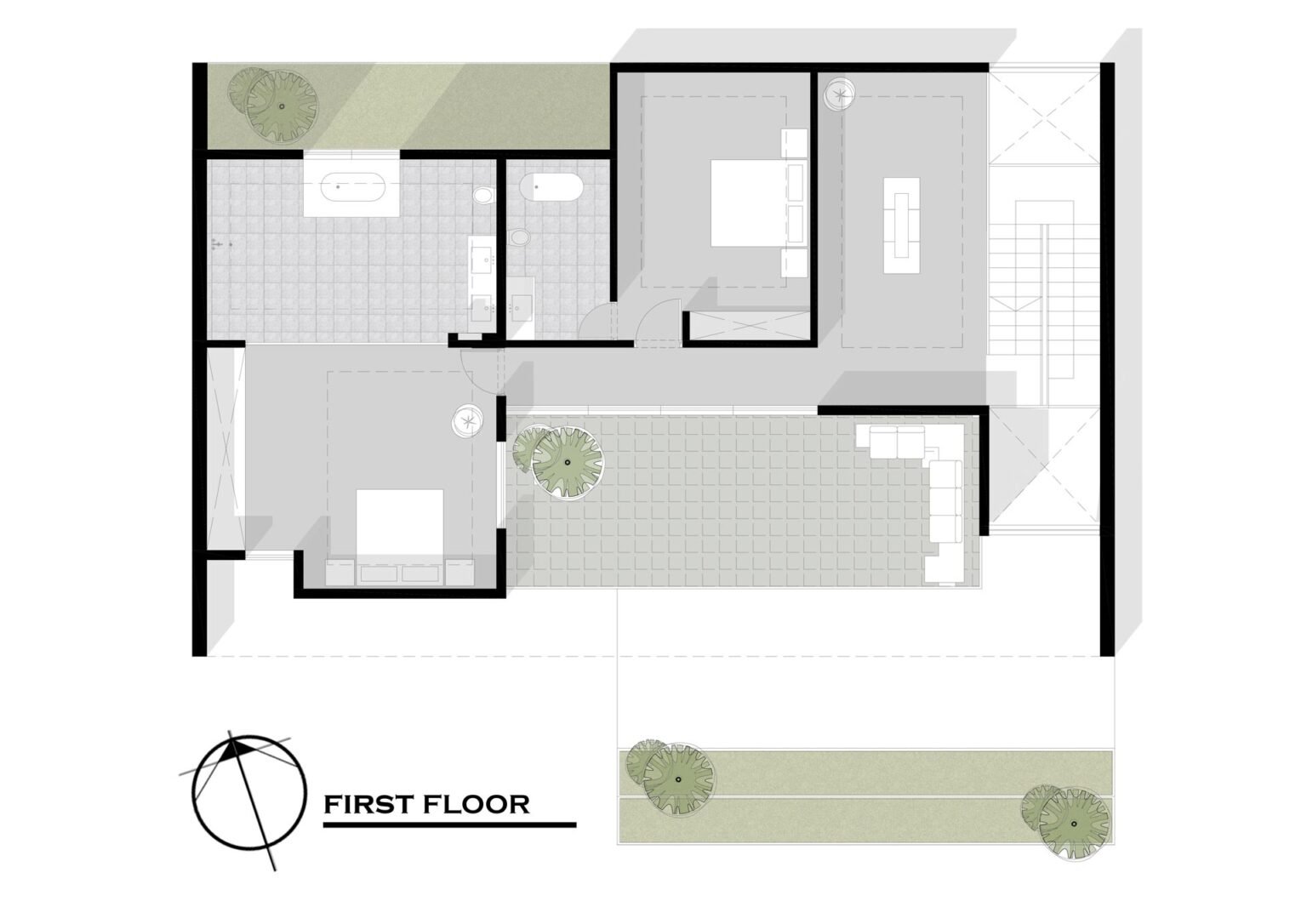 This project presents an innovative prototype for a villa complex, consisting of three distinct villa types: flat, duplex, and triplex. The primary concept for the triplex villa emphasizes the vertical connection between its three levels, enhancing the spatial flow within the interior. This design also optimizes natural lighting, functioning much like an atrium to create a brighter, more open atmosphere.